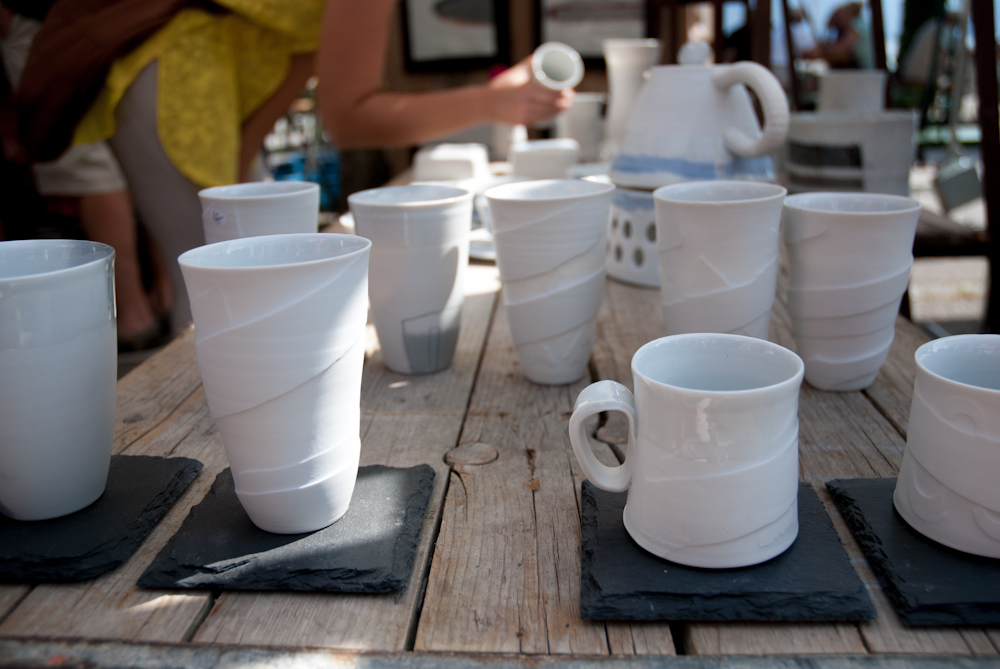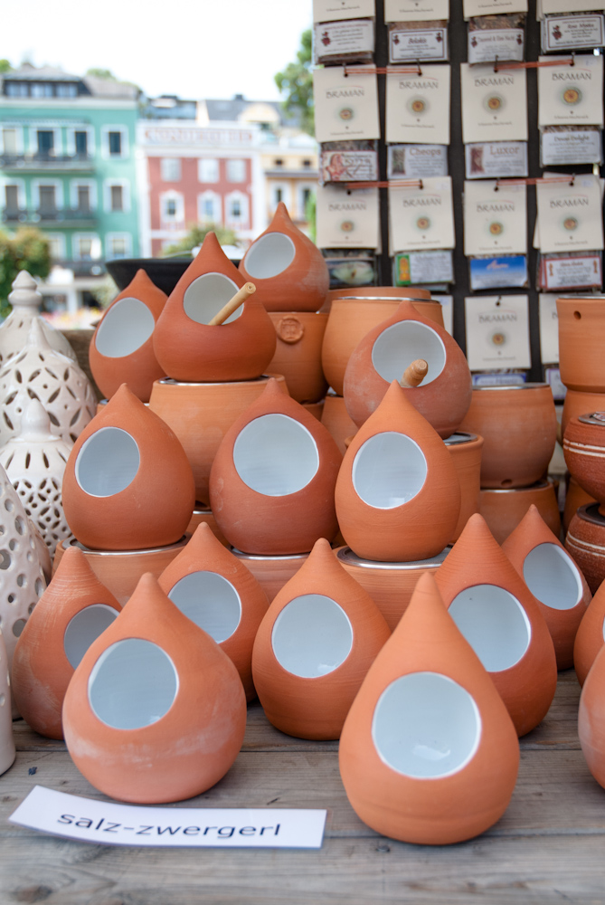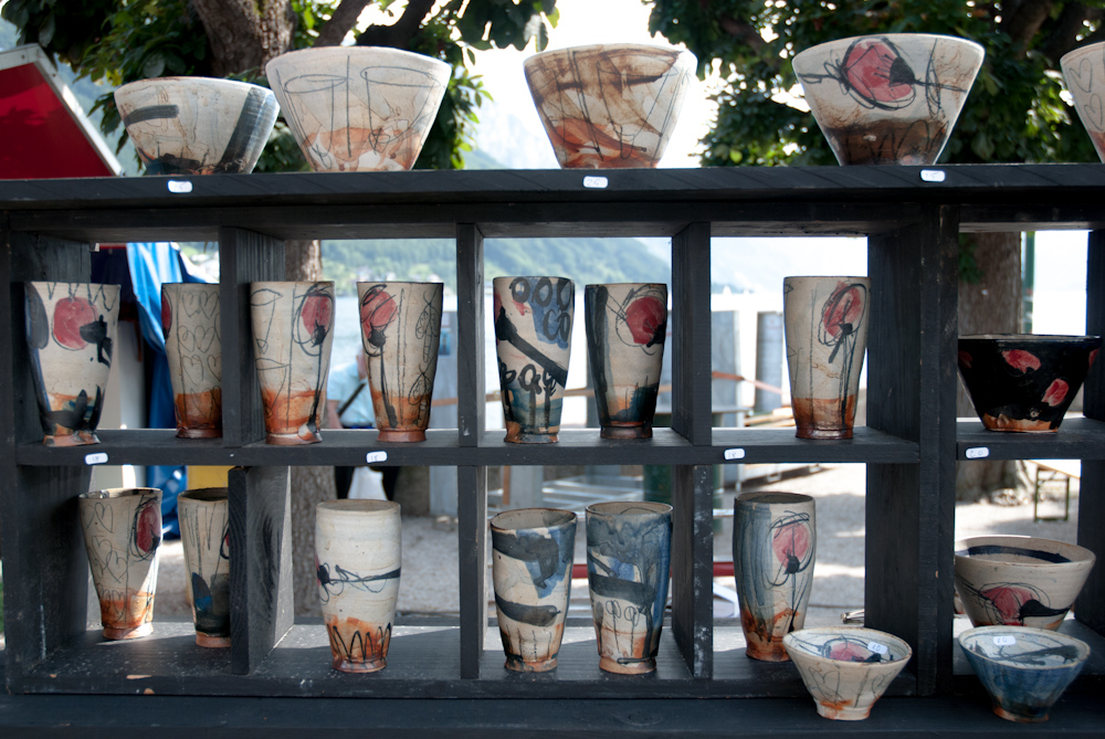 …in lahko si mislite, kako nemirno in neučakano sem zmetala vase avstrijski golaž! Raztavljalcev je bilo kar 125, razporejenih od centra mestnega trga  do polovice sprehajalne poti ob obali jezera. Raztavljalci so prihajali iz celotne Evrope, v zelo različnih stilih in tehnikah, vsi pa so bili seveda češnjice evropske lončarske smetane.
