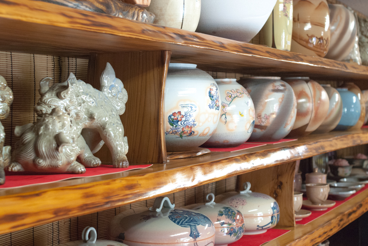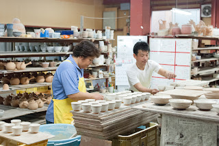 In Japan they have a saying: “Ichi Raku, Ni Hagi, San Karatsu”, that is “First Raku, Second Hagi, Third Karatsu”. It represents the three most valued wares for the japanese tea ceremony, with Raku most ideal and precious. This post is about Hagi-yaki, the ware that comes from Hagi. I visited three potteries and each had one huge noborigama (chambered climbing) kiln. I tried my hagi-skills in the last one. They are going to fire it in Hagi style and send it via mail. Very exciting day in Hagi!